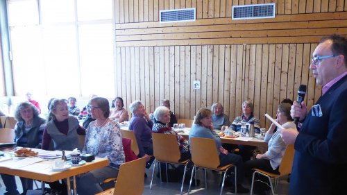 Einmal als Laudator, der sich bei den LandFrauen für die Bewirtung beim Neujahrsempfang 2017, für die Beteiligung am Kinderferienprogramm und für die vielfältigen Angebote im gesellschaftlichen und kulturellen Bereich bedankte. Auch im Auftrag des Gemeinderats lobte er das neue Angebot der „Frauenwerkstatt” im Alten Laden von Beate Hummler und die Gestaltung der Homepage. Außerdem übernahm der Eschacher Bürgermeister die Entlastung der Vorstandschaft und die anschließende Leitung der Wahl. Vorsitzende Annemarie Werner legte ihren Rechenschaftsbericht mit statistischen Zahlen vor; durchschnittlich besuchten 76 Frauen die Veranstaltungen. Die meisten Besucherinnen wurden mit 92 beim Frauenfrühstück gezählt. 96 Mitglieder nahmen an der Ausfahrt zum 60-jährigen Jubiläum nach Bartholomä/Amalienhof teil. In ihrem Jahresbericht ließ Schriftführerin Dorothee Wörner das Jahr 2017 noch einmal Revue passieren. Kassiererin Irmgard Hertäg berichtete von einem leichten Minus bei einer insgesamt guten finanziellen Situation des Vereins. Ende 2017 betrug die Mitgliederzahl 164, im Jahr 2018 wurden bereits sechs neue Mitglieder gezählt. Die Kasse wurde von Elsbeth Förstner und Margret Bareis geprüft und für in Ordnung befunden. In Vertretung der Leiterinnen berichtete Mechthilde Stadelmaier über die Aktivitäten der Gymnastik- und Line-Dance-Gruppen. Die anschließende Wahl erbrachte folgendes Ergebnis für die kommenden drei Jahre; Vorsitzende Annemarie Werner, Stellvertreterinnen Anita Kißling und Mechthilde Stadelmaier, Schriftführerin Dorothee Wörner, Kassiererin Irmgard Hertäg, als weitere Vorstandmitglieder wurden die Vertrauensfrauen Adelheid Bauer, Ilse Kießling, Ilse Hilbert, Ursula Vetter, Birgit Klose, Elfriede Ladenburger, Gisela Kunz und Margit Stieglitz gewählt. Anneliese Hilbert schied nach langjährigem Engagement aus der Vorstandschaft aus. Ihr galt ein herzlicher Dank für ihre wertvolle Arbeit bei den Eschacher LandFrauen. In einer spontanen Sammelaktion kamen für die diesjährige Weltgebetstagsaktion einhundert Euro zusammen. Damit sollen syrische Flüchtlingsmädchen beim Schulunterricht im Libanon unterstützt werden. Vorsitzende Werner richtete einen Dank an das Vorstandsteam und übergab frühlingshafte Blumengrüße. Der Gemeinde Eschach dankte sie für das kostenlose Überlassen der Räume in der Gemeindehalle und im Feuerwehrhaus und für die Mithilfe des Bauhofs beim Aufstuhlen in der Halle. In ihrem Ausblick lud sie zu einem Ausflug mit Führung in den botanischen Garten nach Heilbronn ein und zum Sommerausflug zur bayrischen Landesgartenschau nach Würzburg. Außerdem kündigte sie eine Veranstaltung in Zusammenarbeit mit der Evangelischen Kirchengemeinde und dem Evangelischen Bauernwerk Hohebuch an. Am Dienstag, 6. März um 20.00 Uhr wird zu einer Filmvorführung mit anschließender Diskussion zum Thema „Flächenverbrauch, Auswirkungen auf Landschaft, Landwirtschaft und Gesellschaft” eingeladen. Im Anschluss an die Hauptversammlung begleitete Joe Kratochwille mit seinem Akkordeon die Eschacher LandFrauen beim „Volksliedersingen nach Wunsch”.