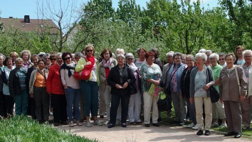 Bei einem Rundgang, geführt vom Vorsitzenden des Fördervereins Garten- und Baukultur und früherem Heilbronner Baubürgermeister Ulrich Frey, sahen die Landfrauen auf zwei Hektar Fläche reine Gartenharmonie. Nicht nur Obstgehölze mit 113 verschiedenen Stein- und Kernobstsorten, sondern auch Staudenbeete, einjährige Blumen und ein Bauerngarten mit Wegekreuz und Kräutergarten wurden vor 18 Jahren übersichtlich in einträchtiger Nachbarschaft angelegt und werden bis heute gepflegt. Verschiedene historische Gartenhäuser, die einst in den Gärten der Stadt gefunden wurden, sind auf dem Gelände an den unterschiedlichsten Stellen originalgetreu wieder aufgebaut worden. Sie überlebten die Bombardierung von Heilbronn im Jahr 1944 durch die britische Royal Air Force, wobei 62 Prozent des Stadtgebiets und die gesamte historische Innenstadt zerstört wurden. Auch die Kilianskirche fiel den Luftangriffen zum Opfer. Sie wurde nach dem Krieg wieder aufgebaut und bei einer Führung in der Kirche bewunderten die Landfrauen besonders den geschnitzten Marienaltar von Hans Seyfer aus dem Jahr 1498. Der Altar war während des Zweiten Weltkriegs abgebaut und eingelagert worden. Die Figuren und Relieftafeln der Flügel überstanden den Krieg im Salzbergwerk in Kochendorf. Davon beeindruckt wurde spontan ein Choral angestimmt, dem die wunderbare Akustik der Kirche zu einem besonderen Klangerlebnis verhalf. Eine Pause in einem Kaffeehaus im Heilbronner Zentrum, ein kurzer Einkaufsbummel und der Abschluss in einer Besenstube rundeten den Tag ab. Chauffeur Ottmar Lakner steuerte die Landfrauen auf der Heimfahrt durch das liebliche Murrtal, das an diesem Tag sein allerschönstes Blütenkleid übergeworfen hatte, passend zur traditionellen Frühlingsausfahrt der Eschacher Landfrauen.